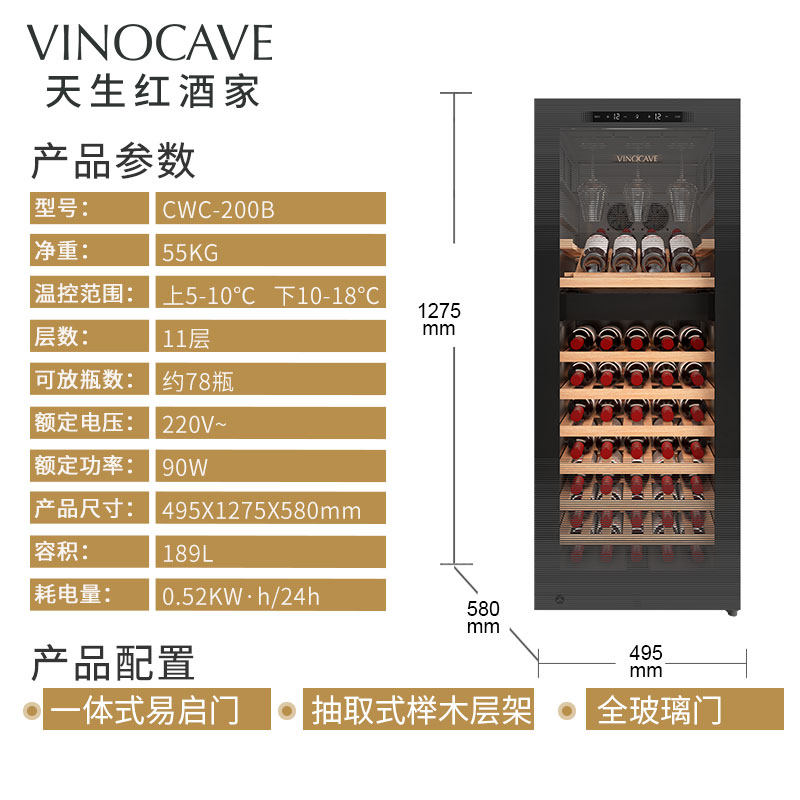 Vinocave 200B tea constant temperature cabinet white wine high-end constant temperature red wine cabinet home ice bar