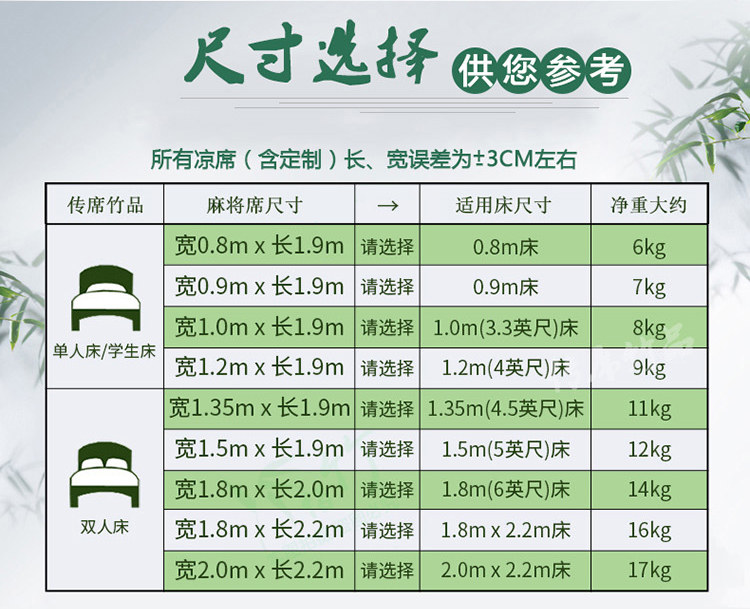 0.8m Bed 0.9m Bed 1.0m (3.3 ft) Bed 1.2m (4 ft) Bed 1.35m (4.5 ft) Bed 1.5m (5 ft) Bed 1.8m (6 ft) Bed 1.8*2.2m Bed 2.0*2.2m