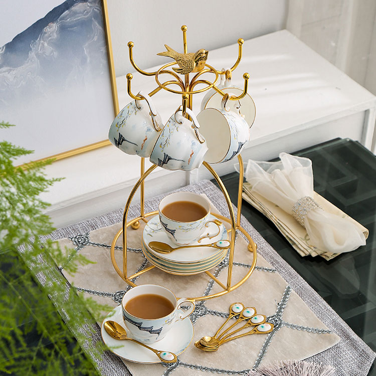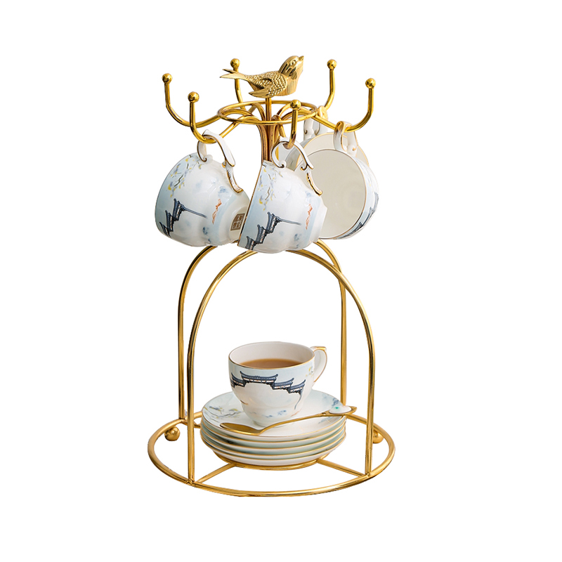 Coffee cup saucer Inform gilded small bird rack Creative cup Dish Containing shelf Home hanging rack inverted hanging draining cup shelf