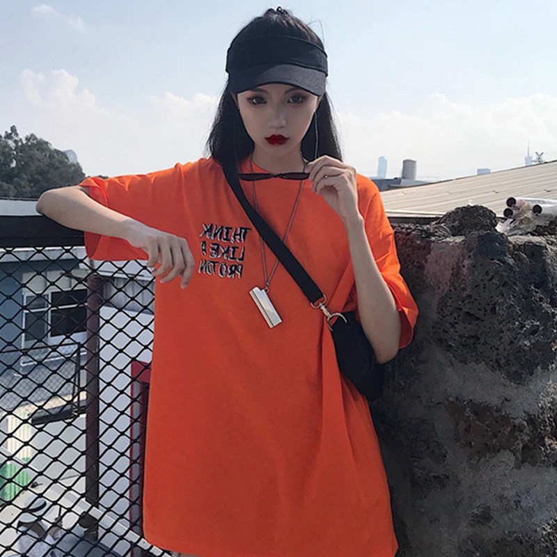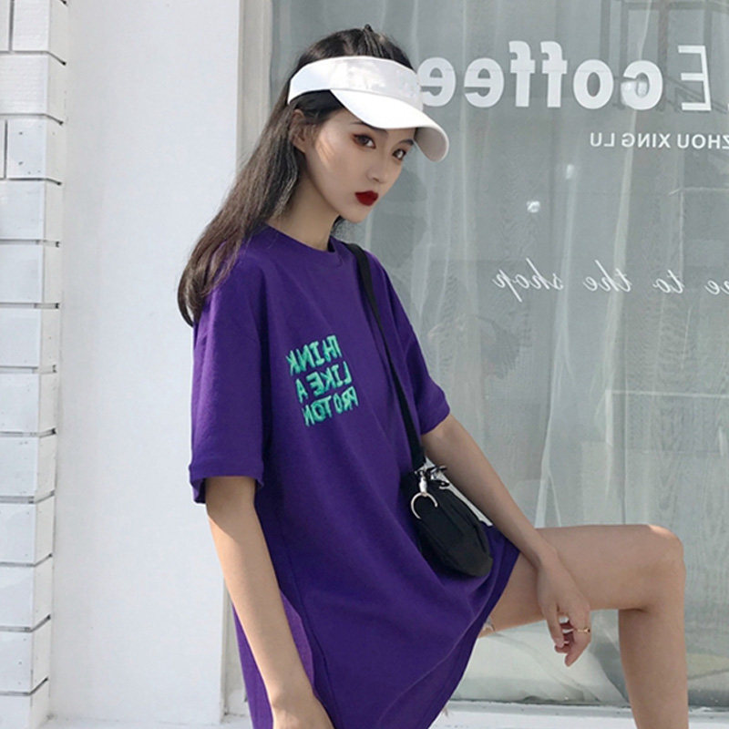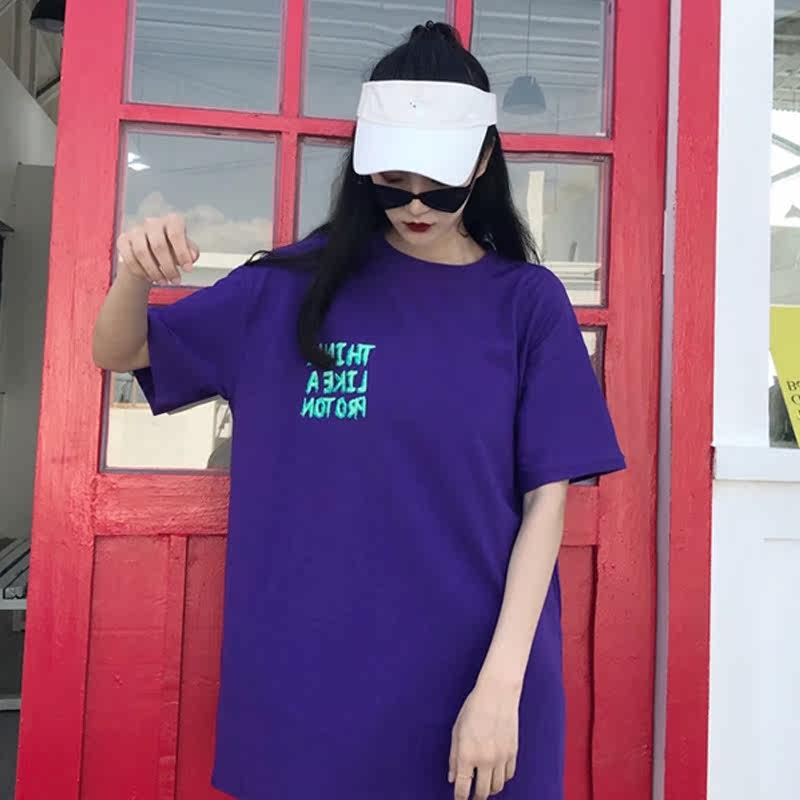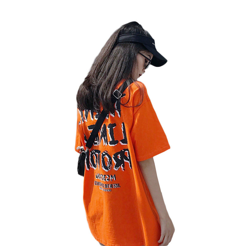 Short sleeve T-shirt women's 2020 summer new lazy loose graffiti letter printing long coat large size clothes