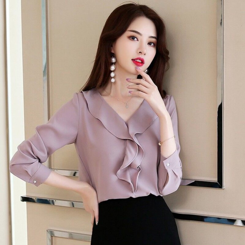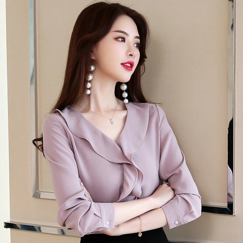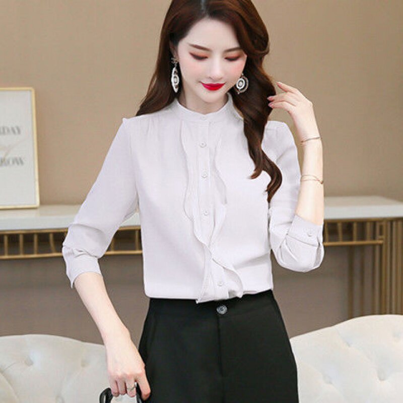 Chiffon shirt women's long sleeve 2020 spring new Korean temperament shirt super fairy shirt foreign style flounce coat