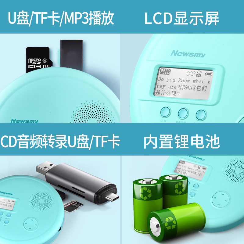 Newman English CD intercalation machine DVD intercalation machine reread machine DVD learning machine synchronic elementary school students high school students textbooks portable with body listening Bluetooth U disc CD player CD machine