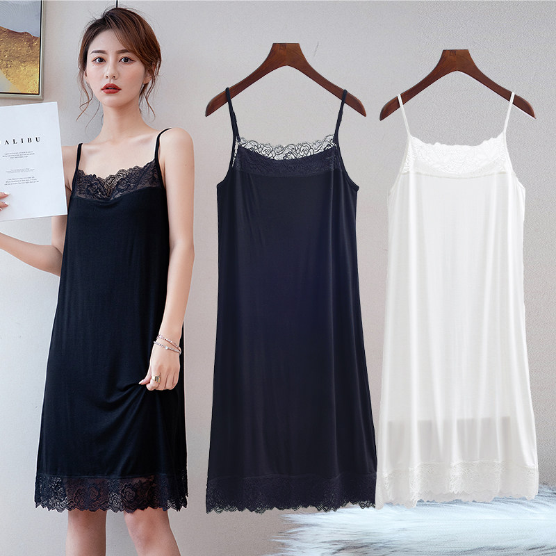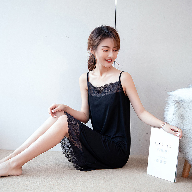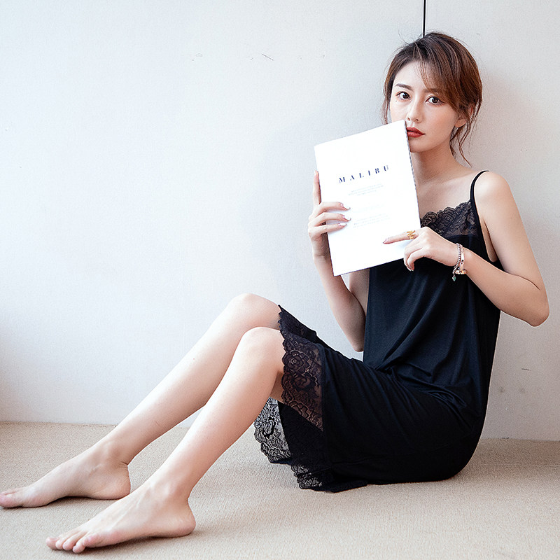 Pajamas women's summer ice silk thin Modell lace night dress large size fat mm base loose long over the knee