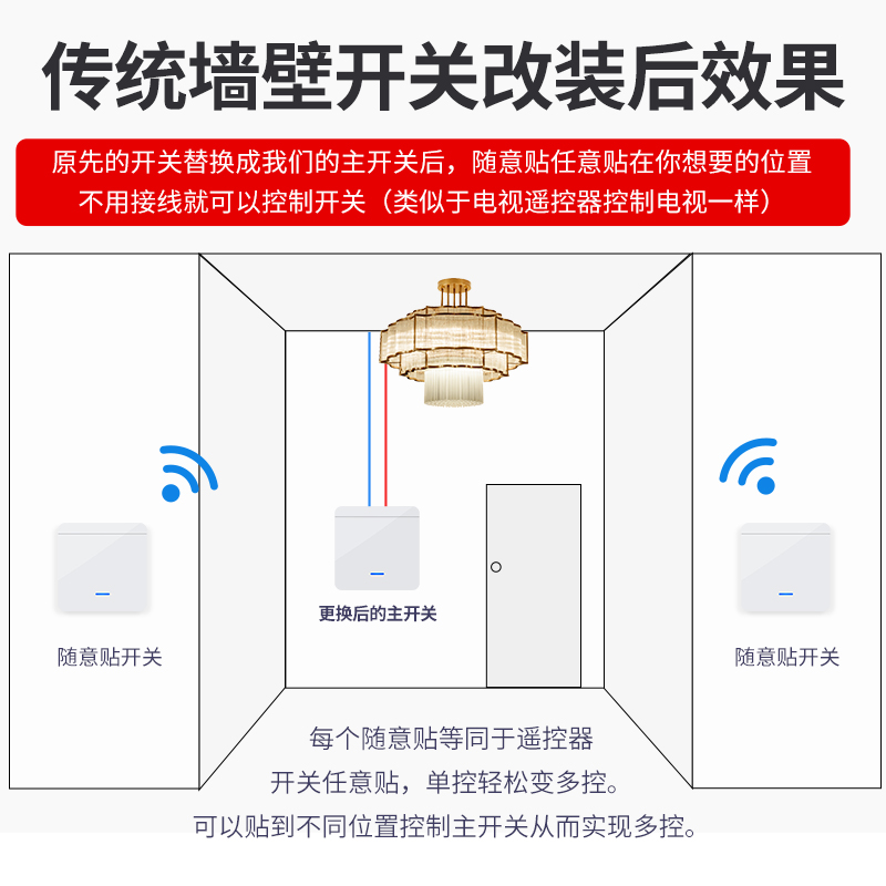 Smart remote control switch Wireless controller Household 86 panel wiring-free 220V electric light dual control Bluetooth free stickers