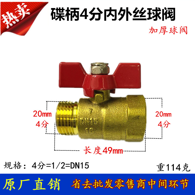 Suming full copper ball valve 2 points 3 points 4 points inner wire threaded gas valve water valve switch butterfly handle internal and external silk DN8 15