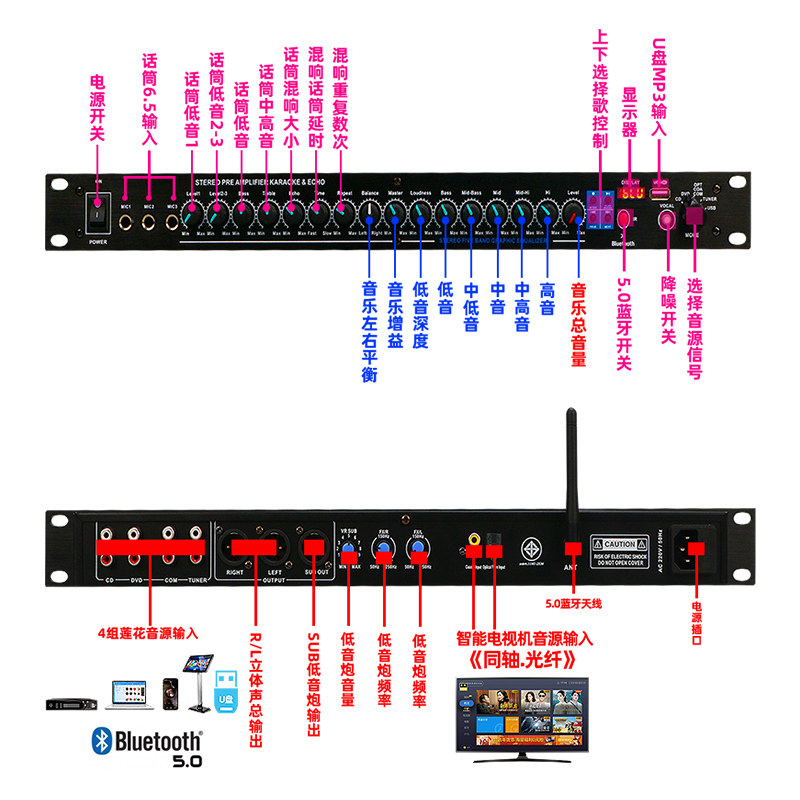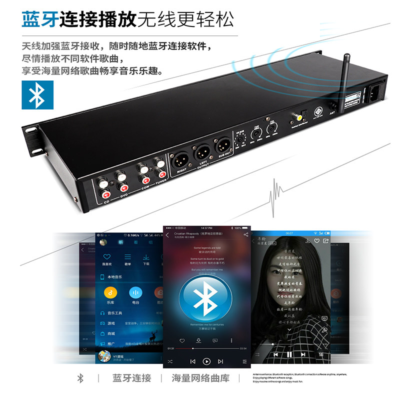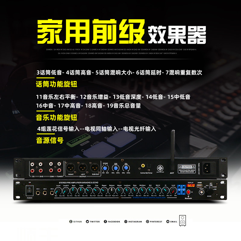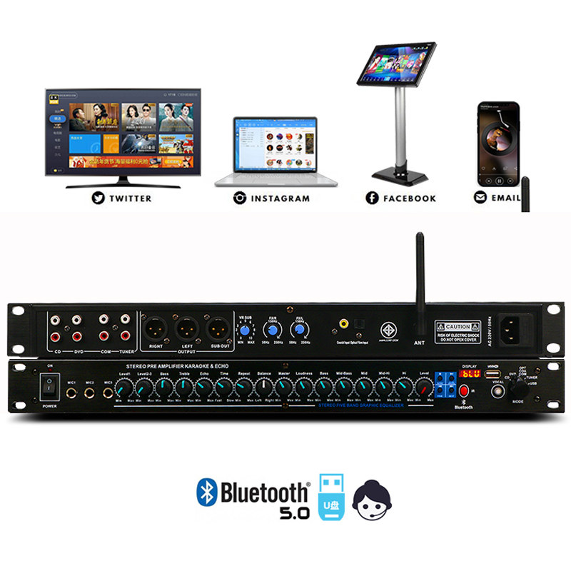 GLY Pro KTV Pre-Effect Home Karaoke Reverb Home Karaoke Anti-Acoustic Call Feedback Suppressor with Bluetooth Fiber Coaxial USB Premix Stage Microphone Microphone Meeting