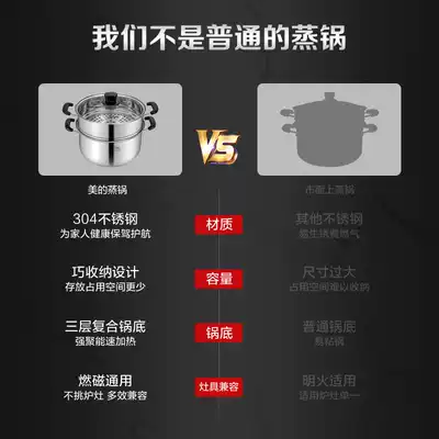 Midea steamer 304 stainless steel 2-layer steamer induction cooker gas stove pot 24cm household steam pot