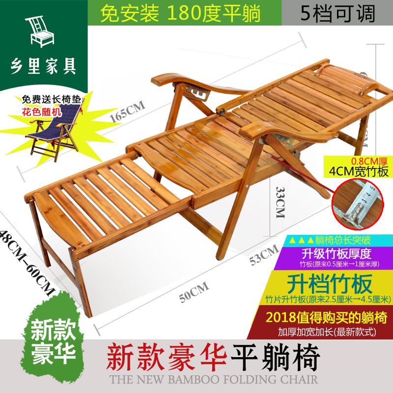Bamboo recliner folding lunch break nap chair lazy man yangtai backrest leisure chair portable type home chair beach lounger