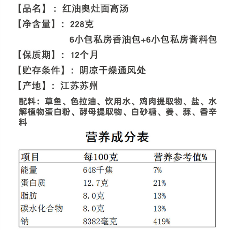 Red oil Olympic cooking noodles high soup bag 228g can also be quickly eaten at home for 6 people