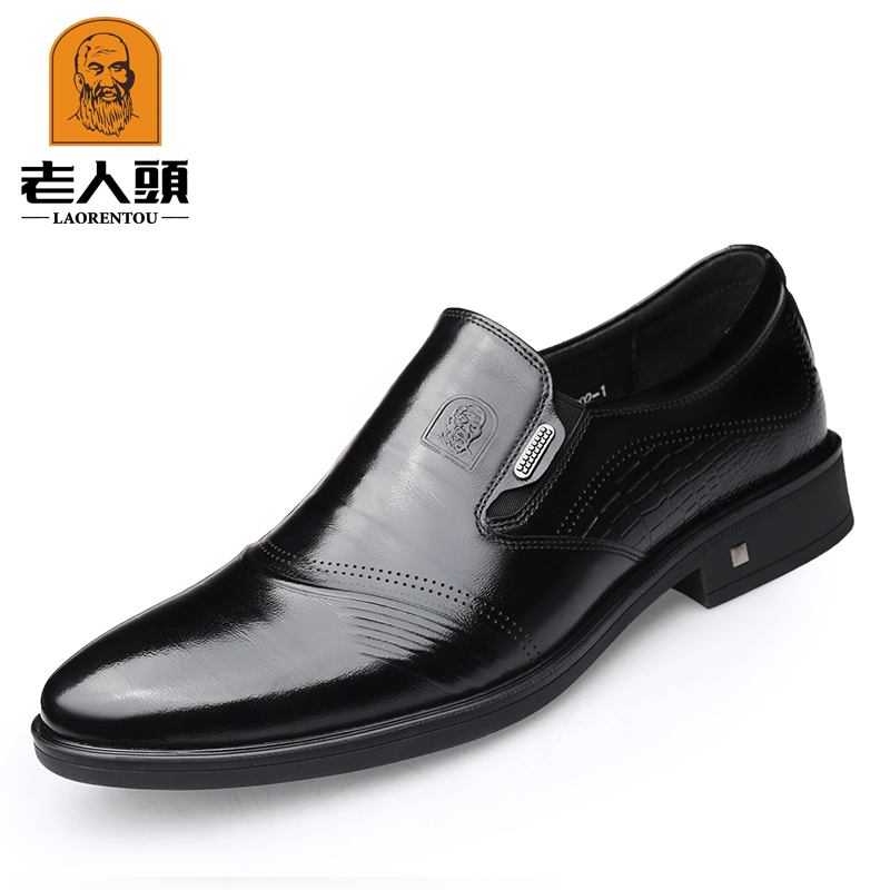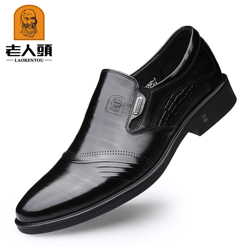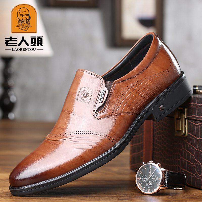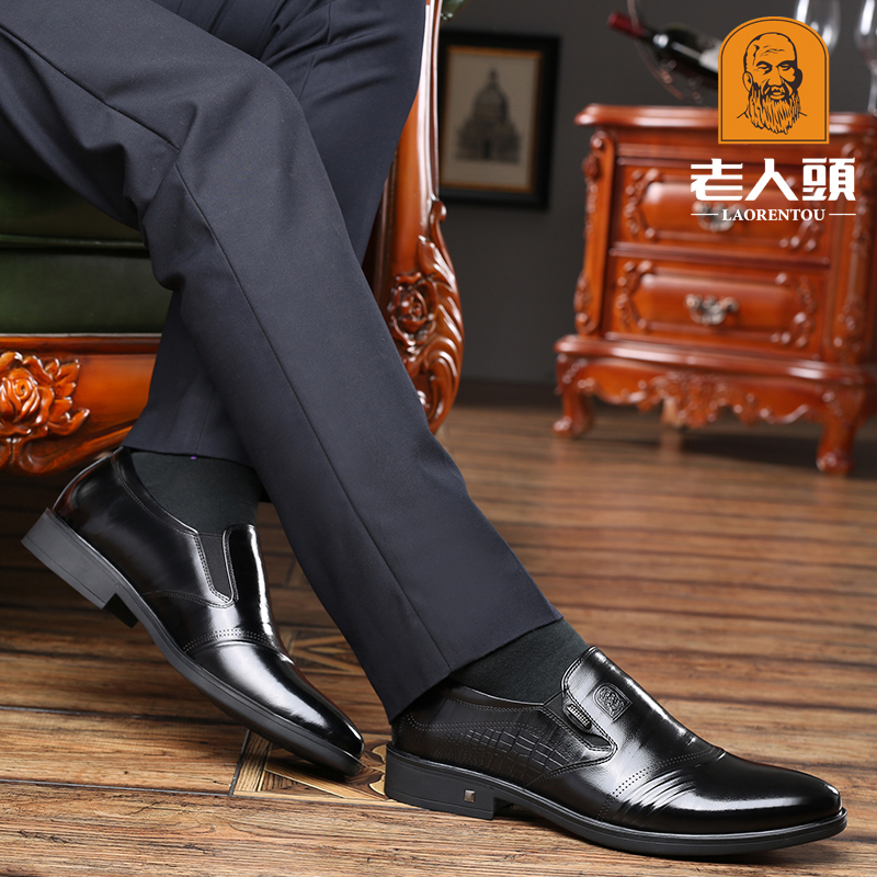 Old men's leather shoes men's winter plus velvet British casual leather pointed shoes men's business formal wear black leather shoes