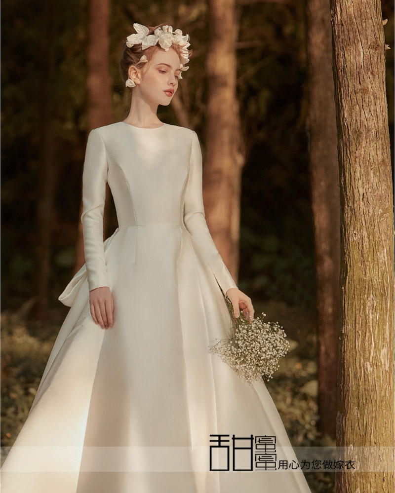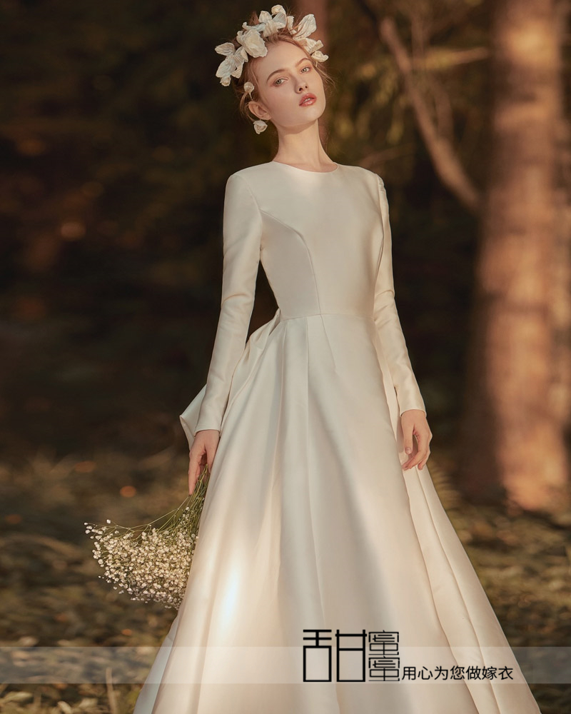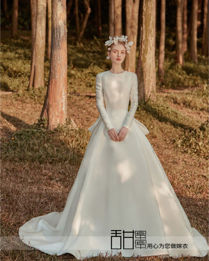2020 autumn and winter New Long Sleeve Satin main wedding dress bride wedding dress go out gauze tour Light Forest simple