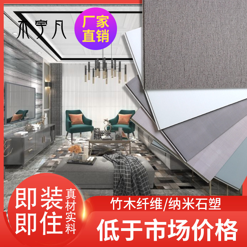 Integrated wallboard bamboo wood fiber siding board quick-install self-installed background wall PVC decoration material whole board