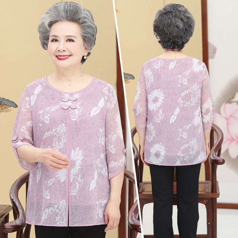 Grandma loaded with spring clothing T-shirt Mom loaded with summer clothes mid-sleeve fake two sets of elderly clothes 60-70-year-old girl