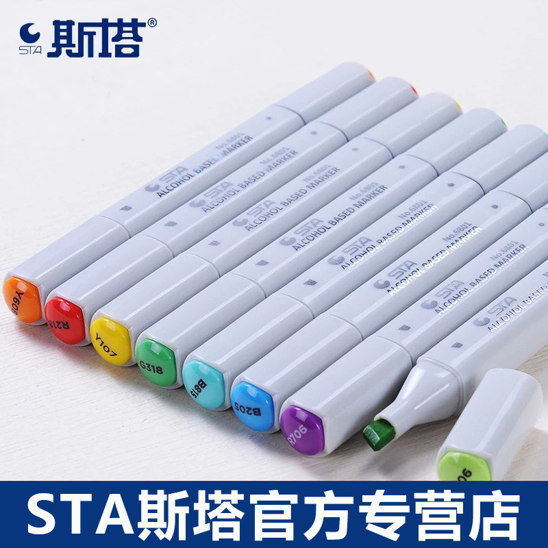 STA Sta 6801 Alcohol Double Head Macpen Single Self Selected Black Cartoon Painting Students Special Room