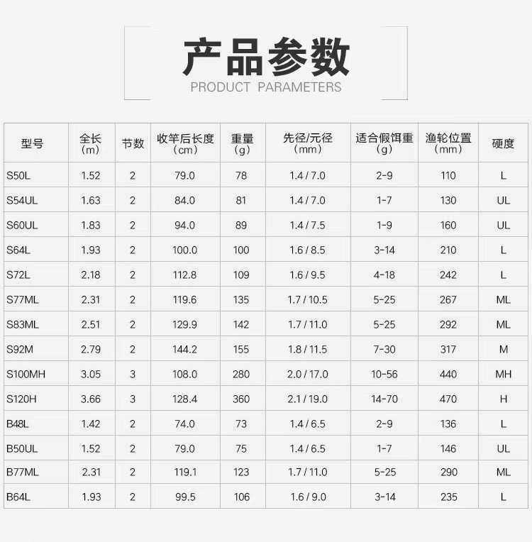 B50UL gun handle 1 52 m UL NXB64L gun handle 1 93 m L hardness NXS54UL straight shank 1 63 m UL NXS60