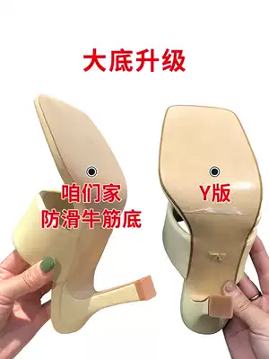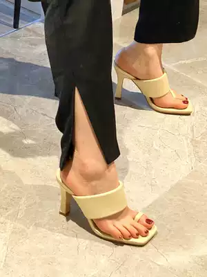 Clip-toed high-heeled sandals female fairy style thin heel one-word belt Roman summer 2021 new net red half slippers female outer wear