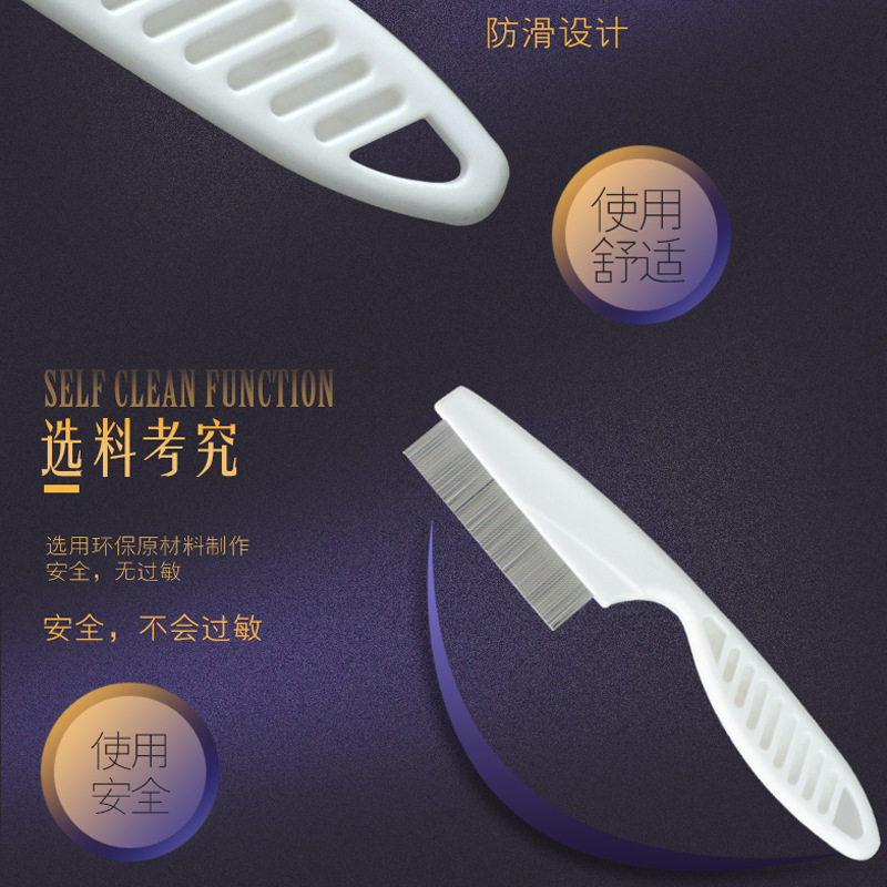 Pet Pooch Cat Flea Comb Steel Needle Comb Encrypted Except Flea Lice Comb White Handle Pet Supplies