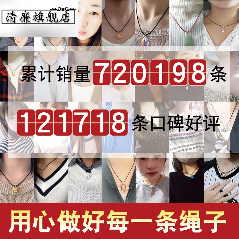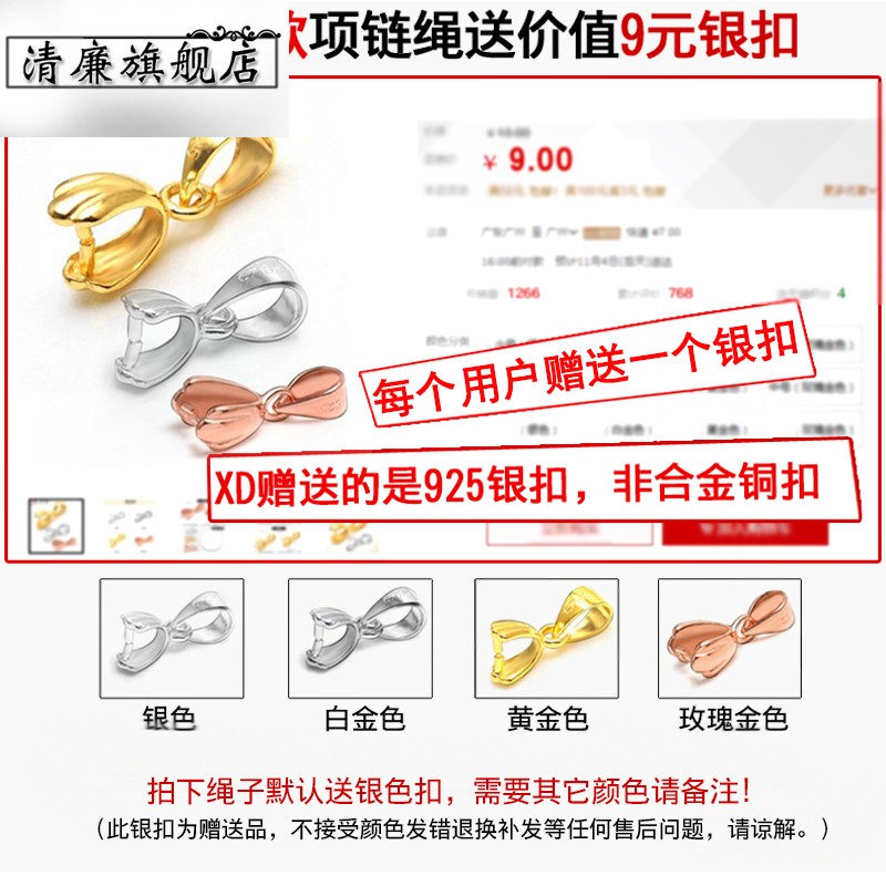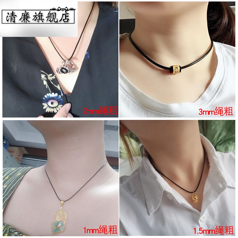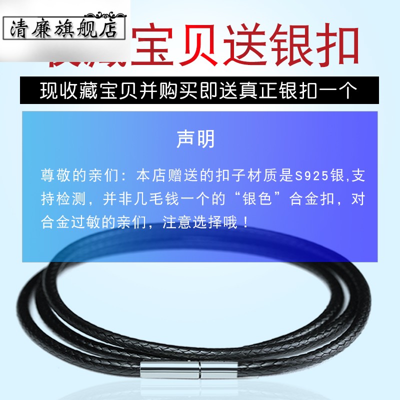 Send silver buckle leather rope necklace pendant necklace hanging rope gold jade jade leather men and women black red rope wax rope
