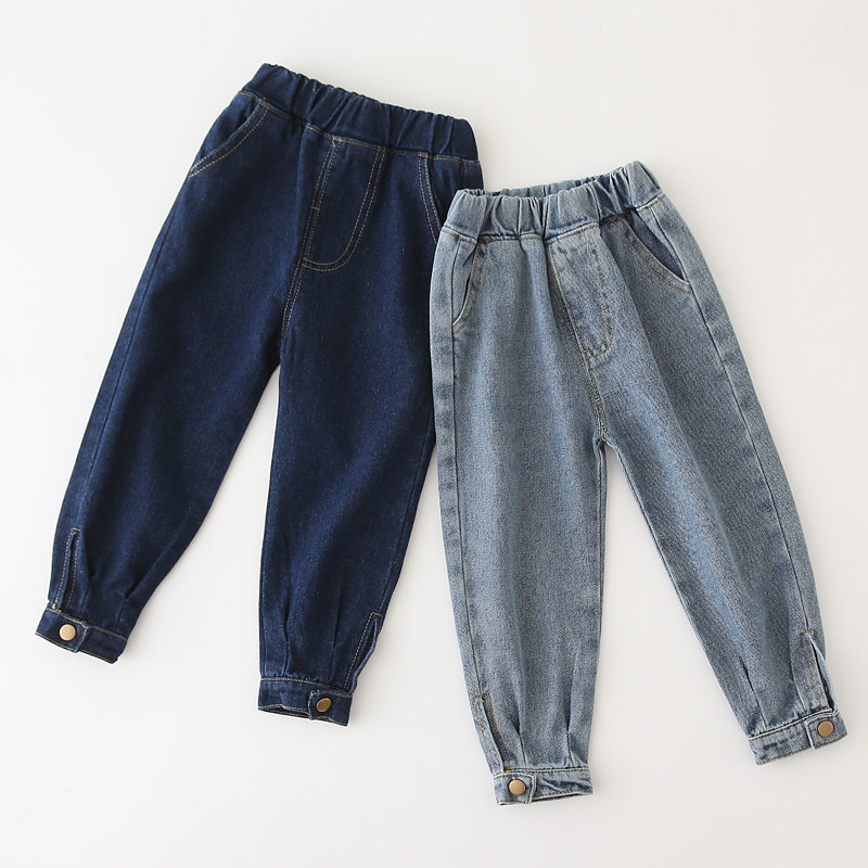 Boy jeans loose version 2022 new Korean version Children's autumn baby cuddling with feet long pants for spring clothes children's pants