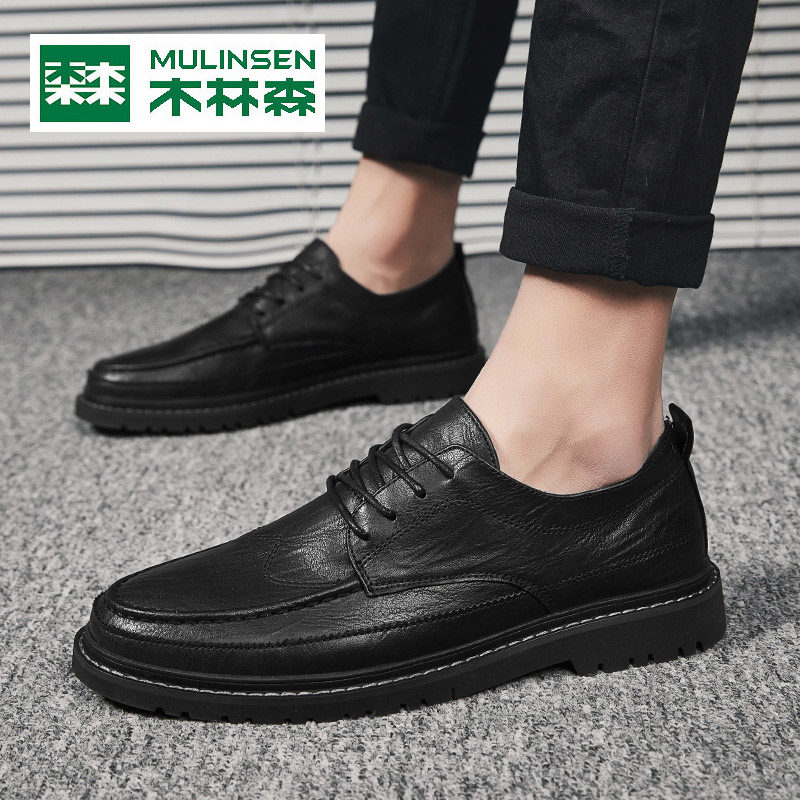 Mulinsen leather shoes men's Korean style autumn shoes teenagers all-match British trendy shoes black business formal casual men's shoes