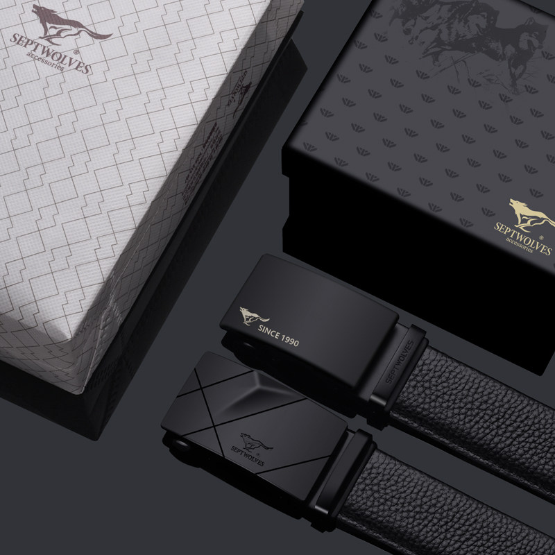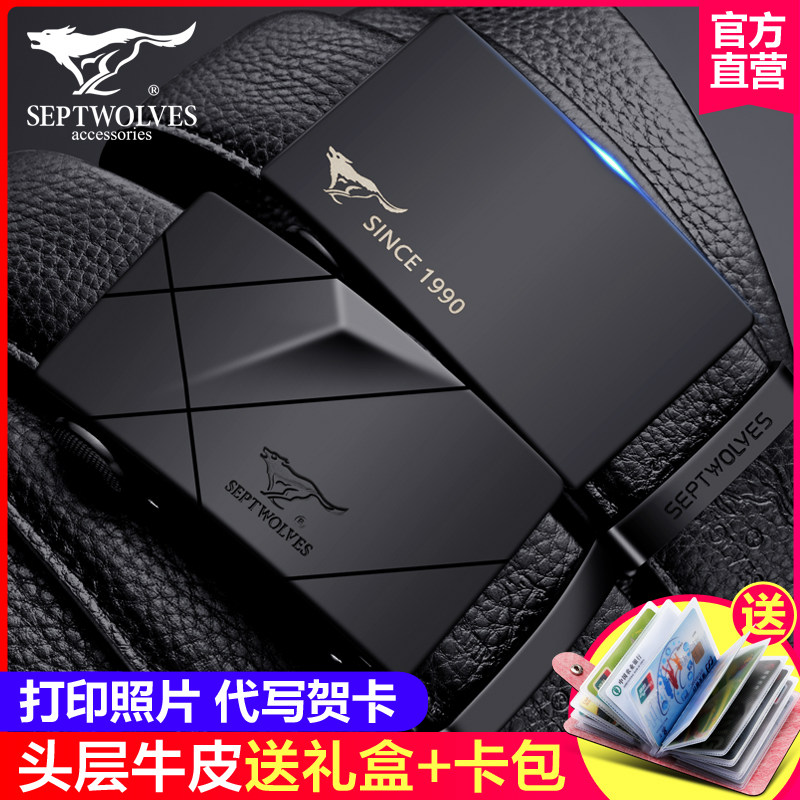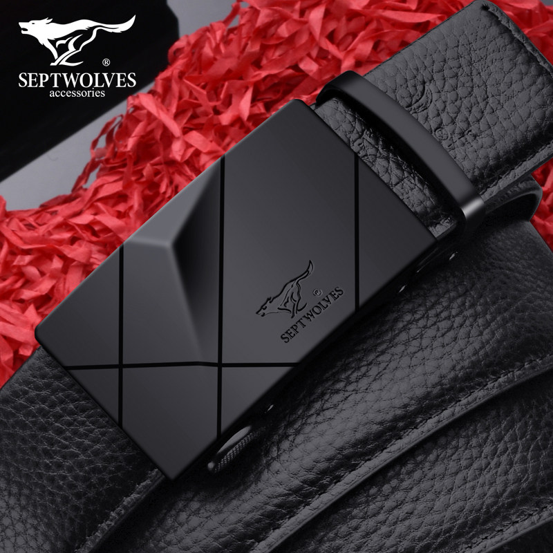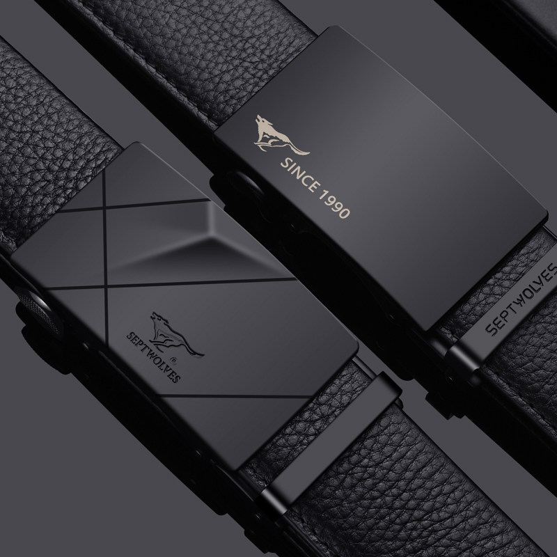 Septwolves Men's Belt Genuine Leather Automatic Buckle Pure Top Layer Cowhide Business Pants Belt Fashionable Young Men's Belt