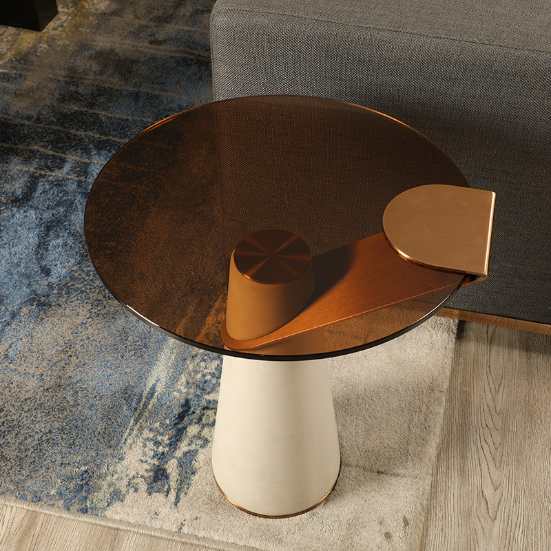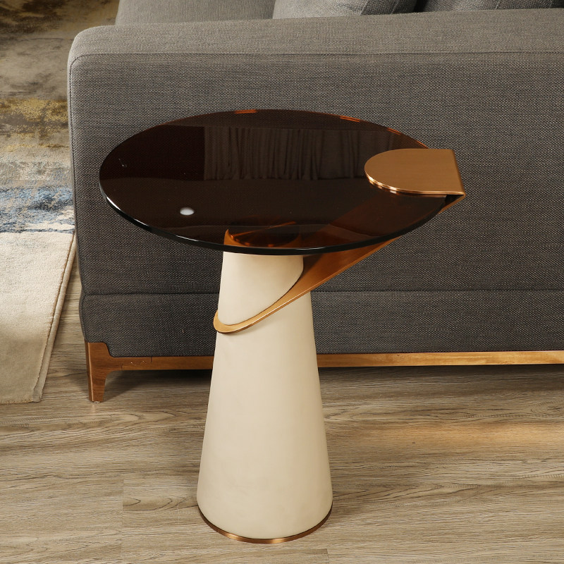 Italian light luxury side table round metal corner table modern minimalist small apartment living room Nordic glass small coffee table side table