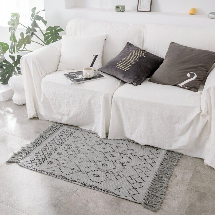 ins wind geometric line floor mat tassel door foot mat living room sand bedroom bedside blanket cloakroom foyer machine wash