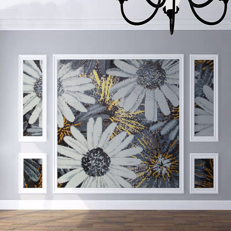 Sunflower puzzle mosaic wall stickers powder room tile background wall decoration mosaic painting light luxury TV wall