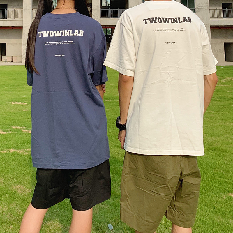 LKStore TwowinLab 2020SS Basic Simple Alphabetic Print Short Sleeve Loose T-Shirt for Men and Women