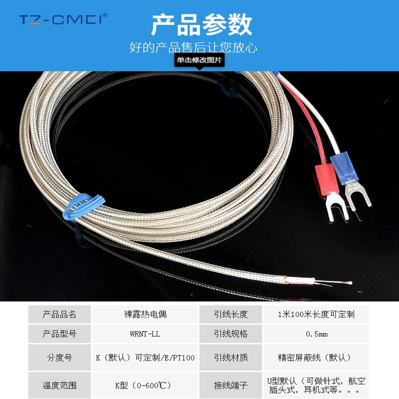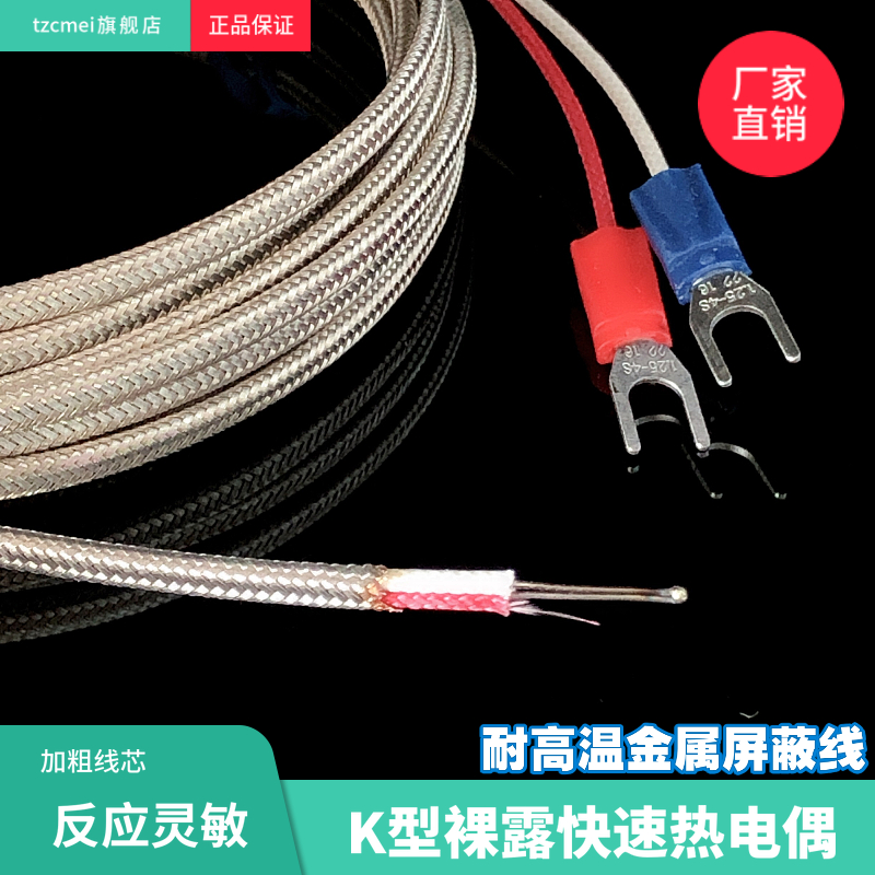 K-type bare thermocouple fast response heating line K-type round bead type temperature measuring line K-type fast response thermocouple