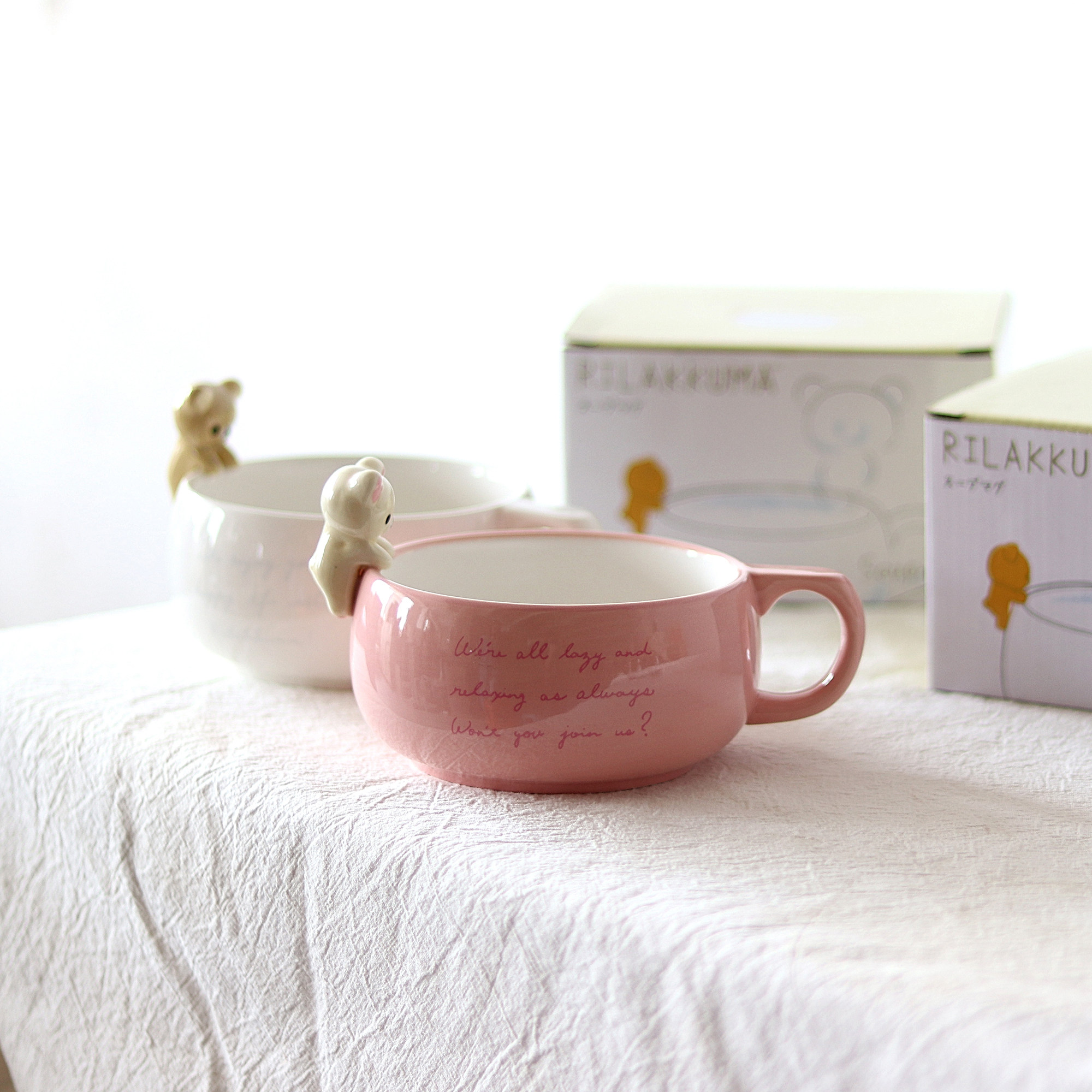Day Style Creativity Easy Bear Cute Cartoon Ceramic Groveling Cup Coffee Cup Breakfast Oat Cup With Spoon