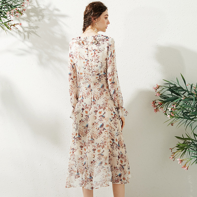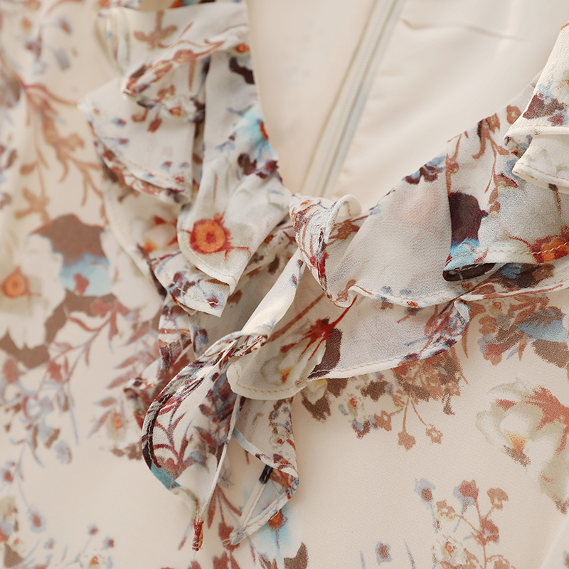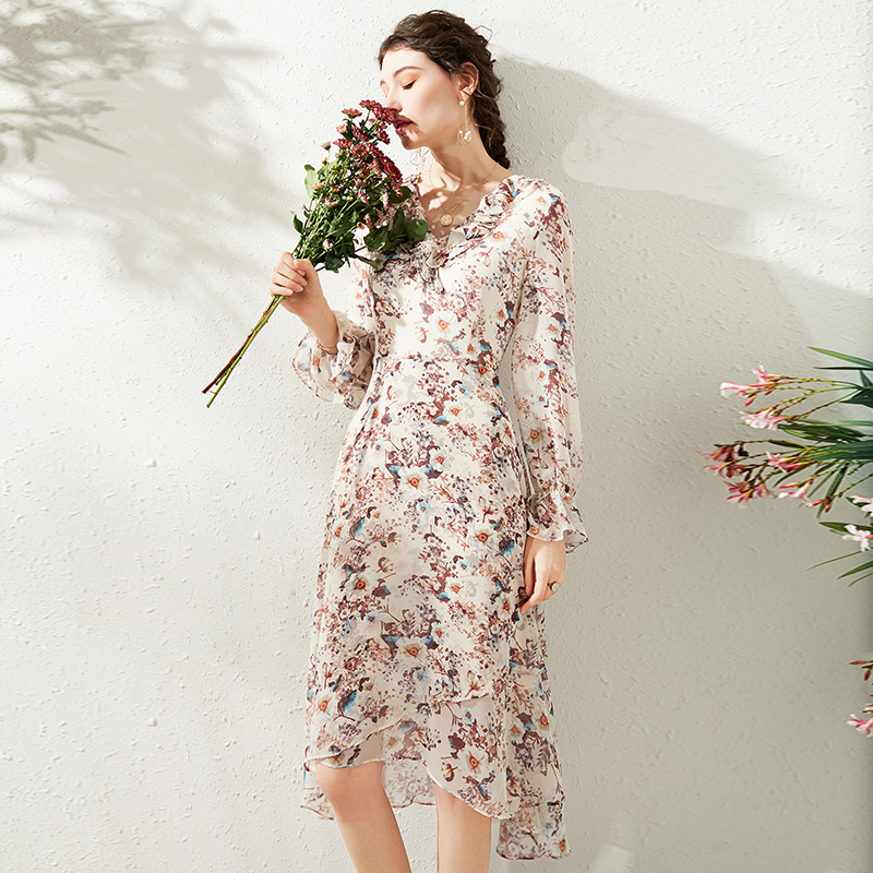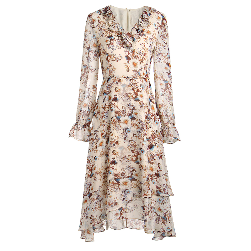 MAJE KARA 2022 spring summer style women's dress new French style sweet and feminine female crushed floral long sleeve fashion display slim fit