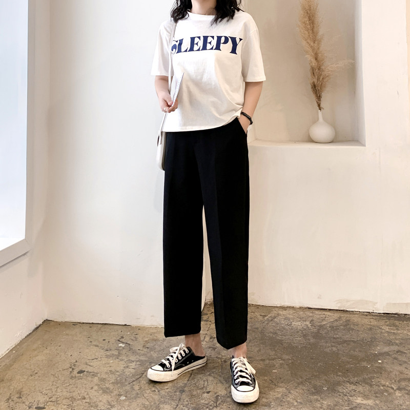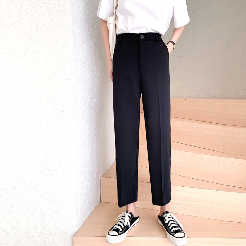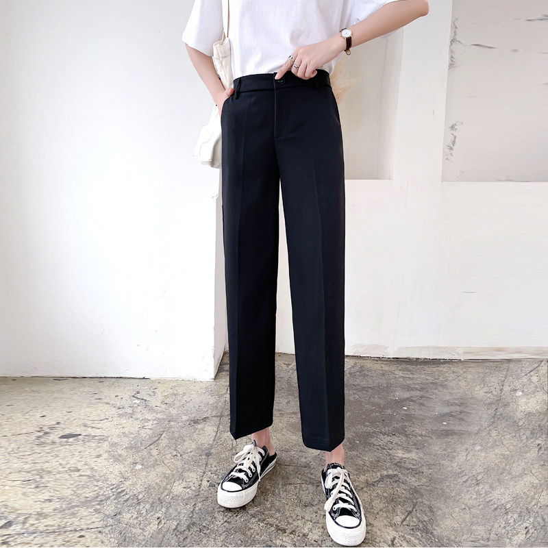 Suit pants women's straight loose fat mm spring and autumn new large size 200 pounds all-in-one thin nine-point hanging smoke pipe pants