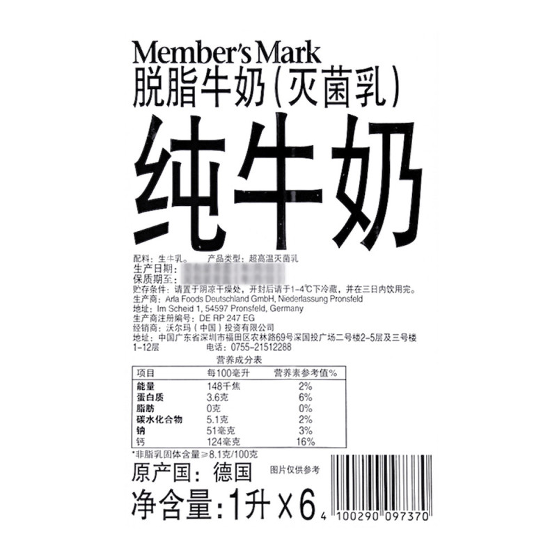 Sam Shop Members Mark Germany Degreased pure milk 1L* 6 whole boxes
