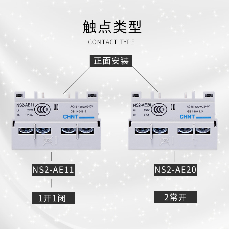 Positive Tai breaker transient auxiliary contact point NS2-AU AE11 positive loading side mount 1 open 1 closed 2 often open