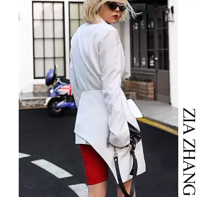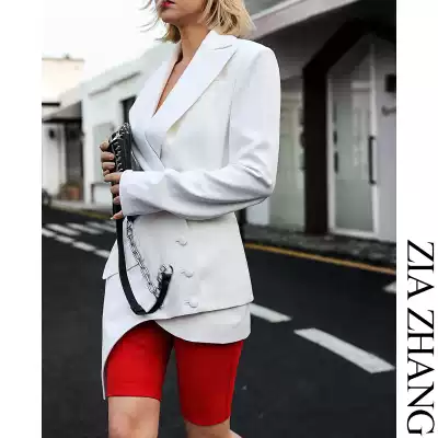 Z boss modern two-piece apron suit asymmetrical straight collar deep V wool suit jacket women