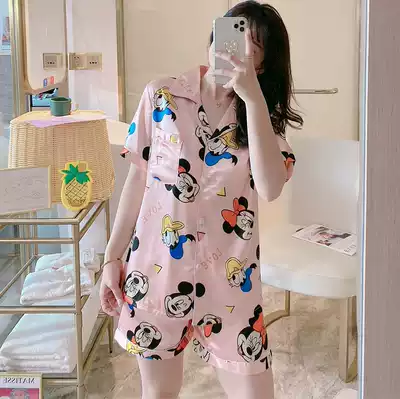 Ice silk pajamas female summer short-sleeved shorts two-piece set cartoon cute student silk home clothes can be worn outside