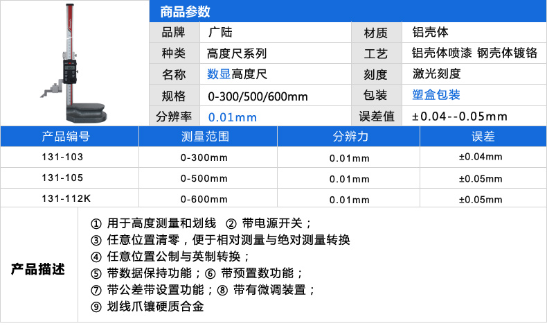 Wide-land number display height scale electronic scribe ruler 0-200-300-500-600 number of display scribe height ruler