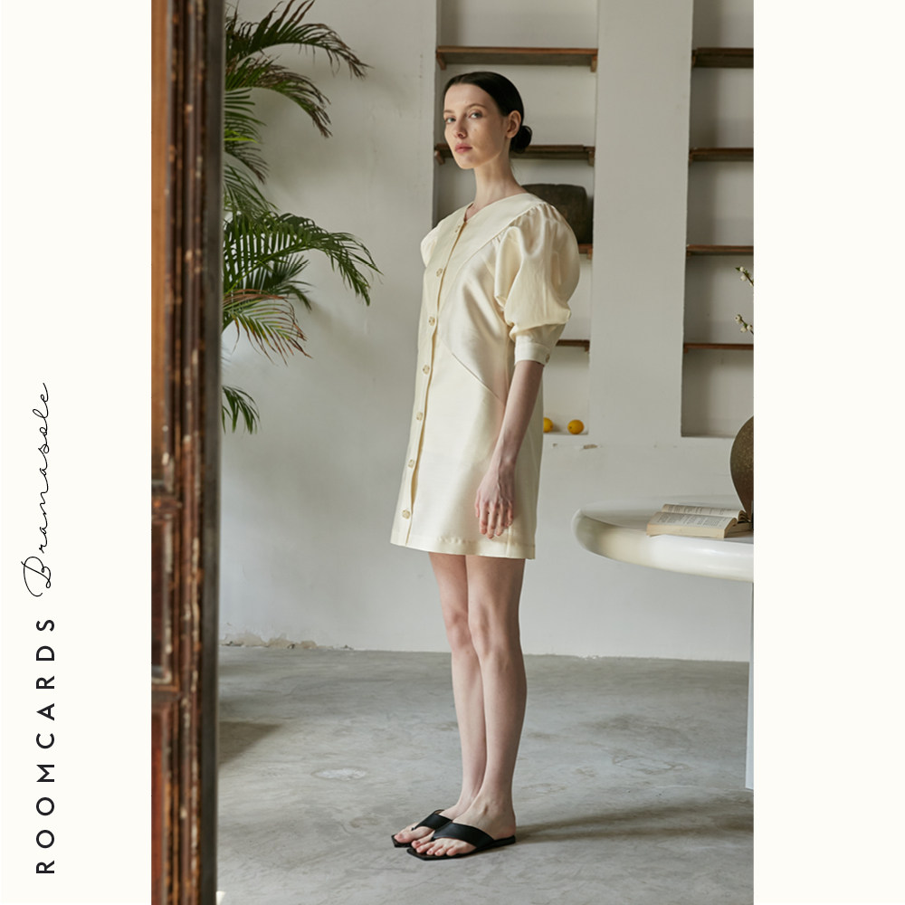 ROOMCARDS INDEPENDENT DESIGNER BRAND TRUE SILK WOOL METHOD BUBBLE SLEEVE FOREIGN DRESS LADY SPRING TEMPERAMENT HIGH END
