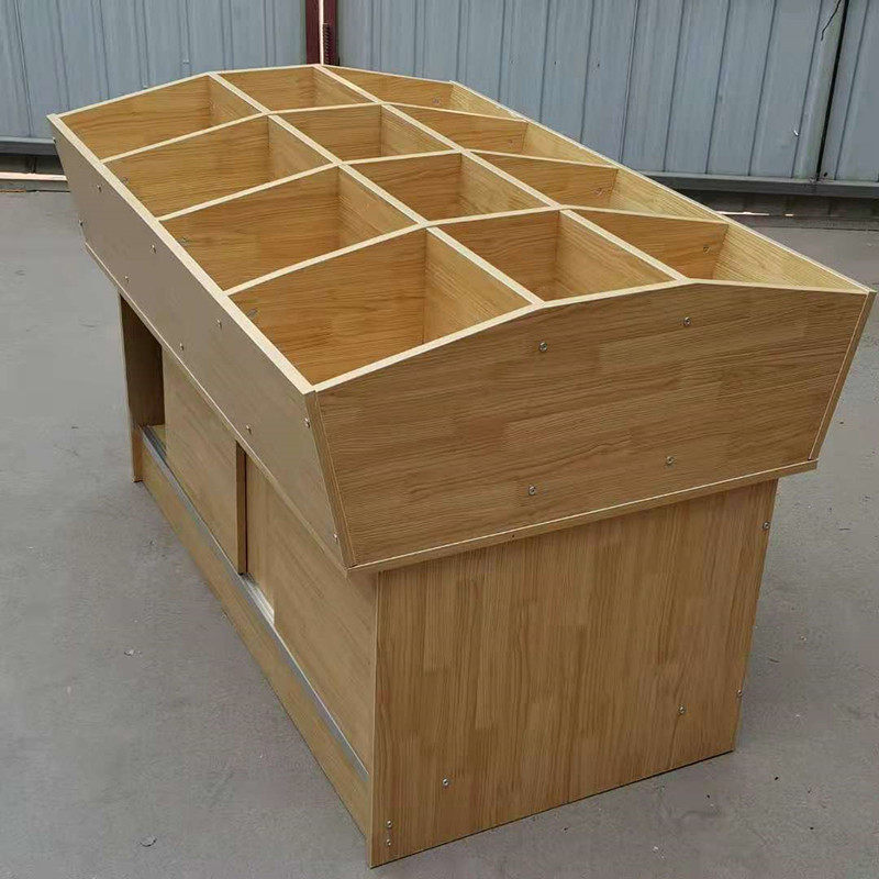 Supermarket rice grain barrel rice bucket rice cabinet assembly twelve grid rice noodle wood shelf grain mixed grain cabinet dried fruit bulk container