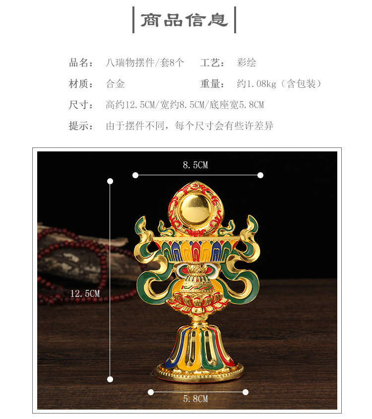Tibetan ornaments alloy painted eight auspicious objects esoteric supplies auspicious eight treasures Buddha hall decoration eight auspicious objects