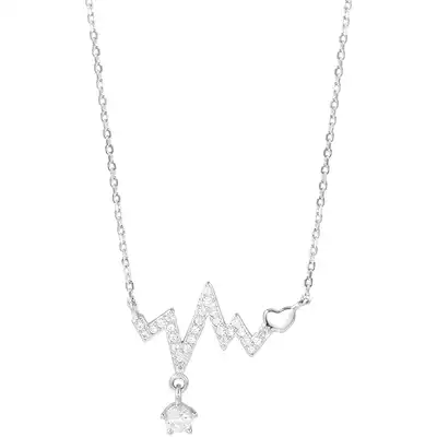 Flash Diamond heartbeat necklace female 925 sterling silver simple Net red temperament choker ins cold wind light luxury niche neck