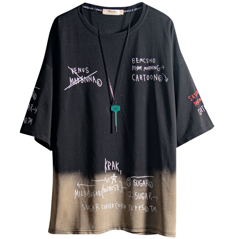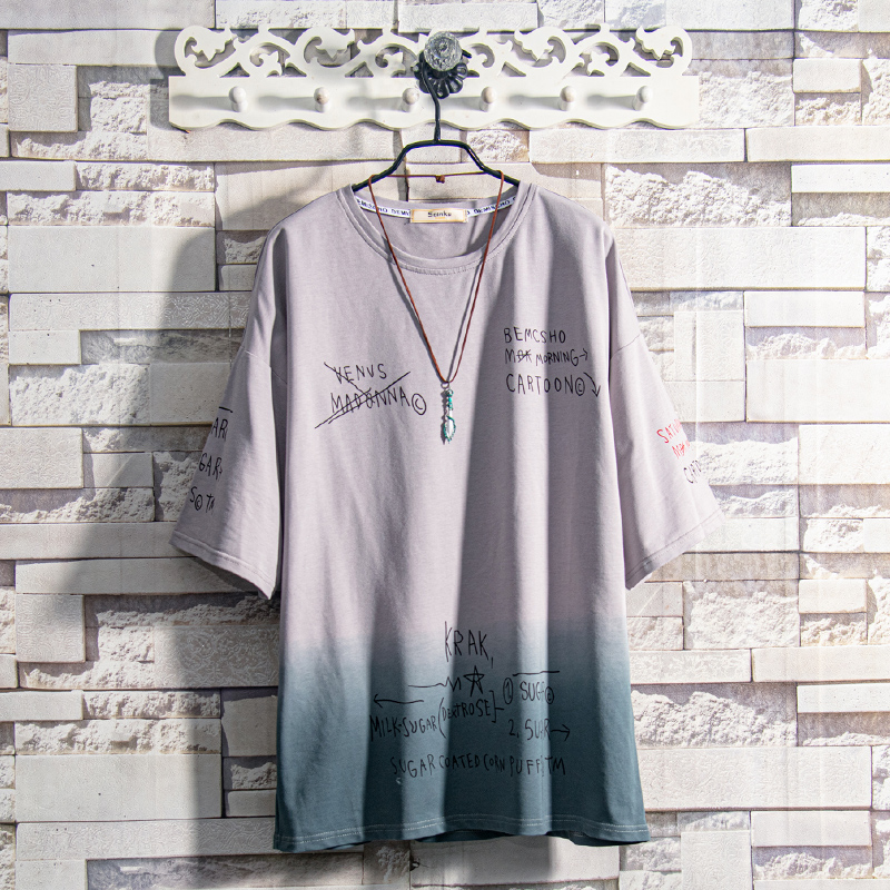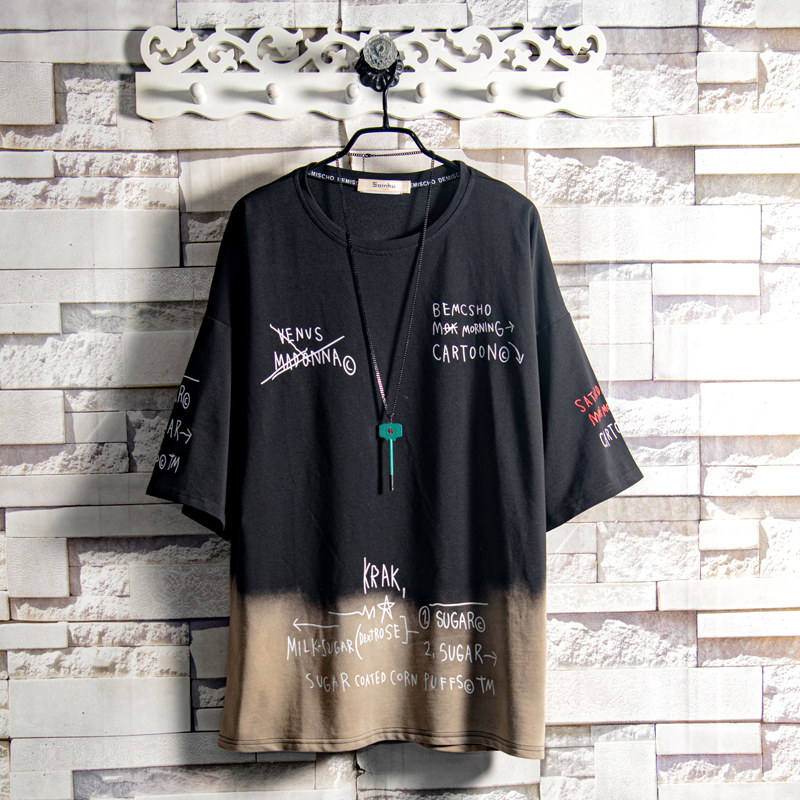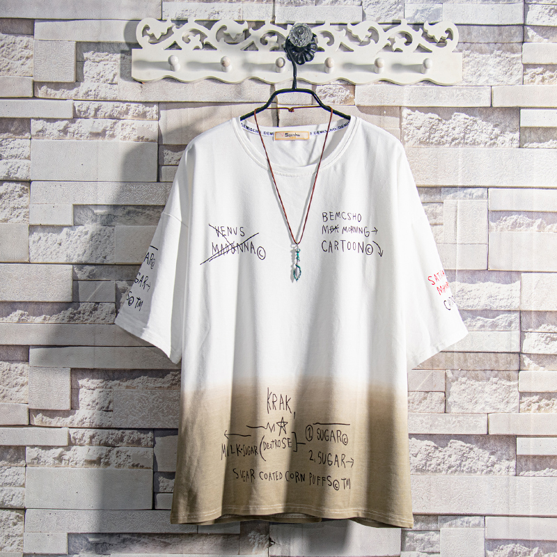 White sugar rose 2022 asymptotic color printed short sleeve T-shirt male summer trend student 50% sleeve Korean version ins half sleeve