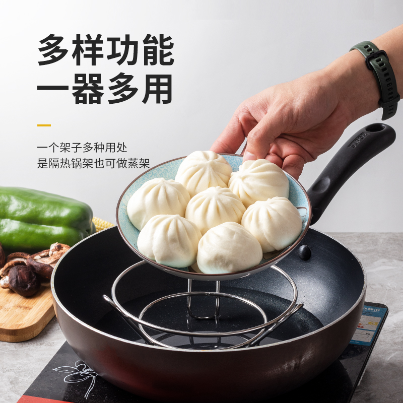 Stainless steel pot rack casserole multi-functional kitchen round heat insulation anti-scalding pot put pot pad storage layer rack iron rack steaming rack