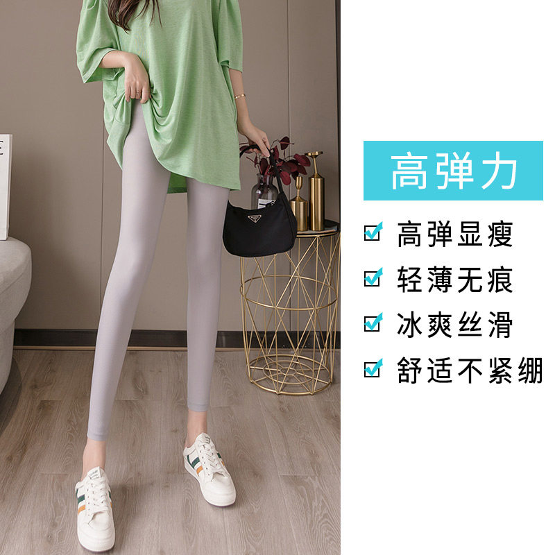 Ice silk leggings, women's outer wear, spring and summer, thin section, high waist, large size, slim fit, thin, elastic, narrow-leg pants