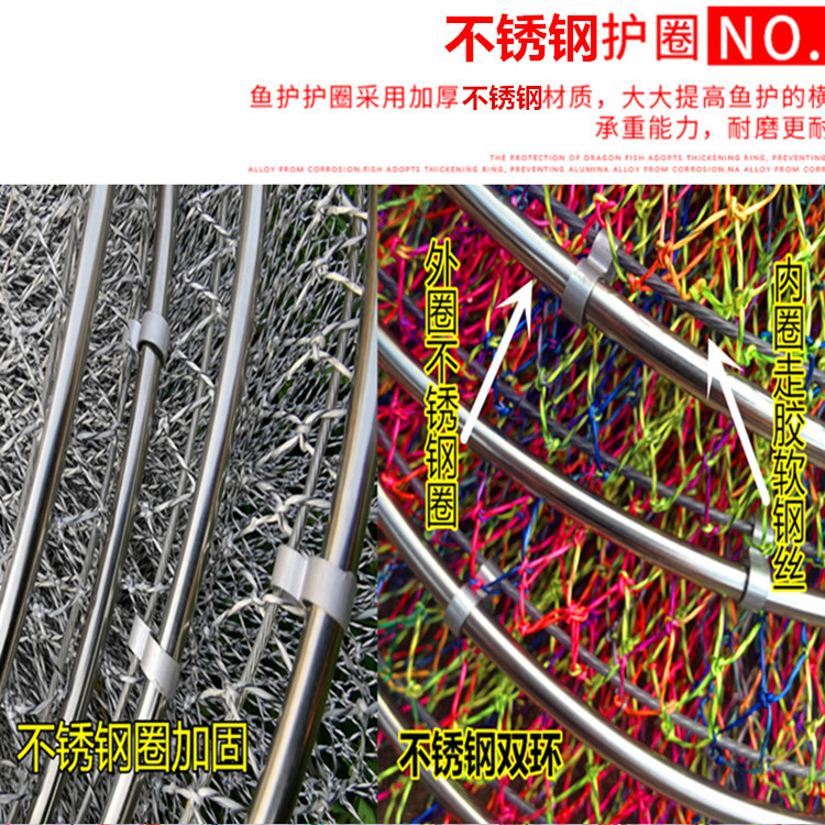 Special offer thick horse line hand-woven black pit fish protection net anti-hanging quick-drying stainless steel ring fishing protection fishing net pocket