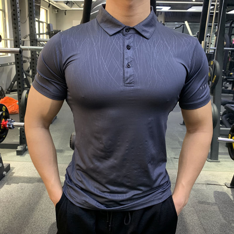 Fitness clothing men's tights lapel Polo sports T-shirt stretch quick-drying running training clothing coach work clothing custom