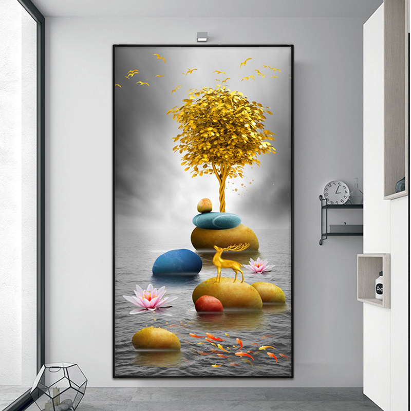 Modern minimalist light extravaganza Painting New Chinese Style Living Room Sofa Background Wall Decoration Painting into the Outdoor Guan Dining Hall Mural Painting