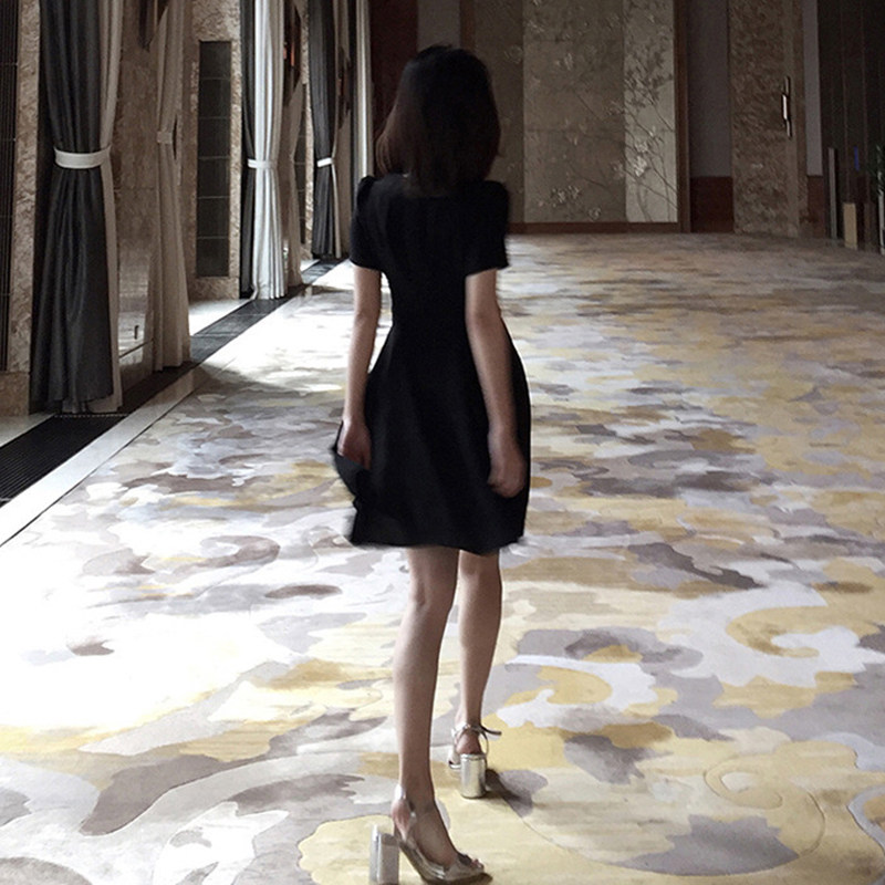 2022 summer new haute cuisine French temperament minimalist Hepburn small black dress retro slim hot girl style dress