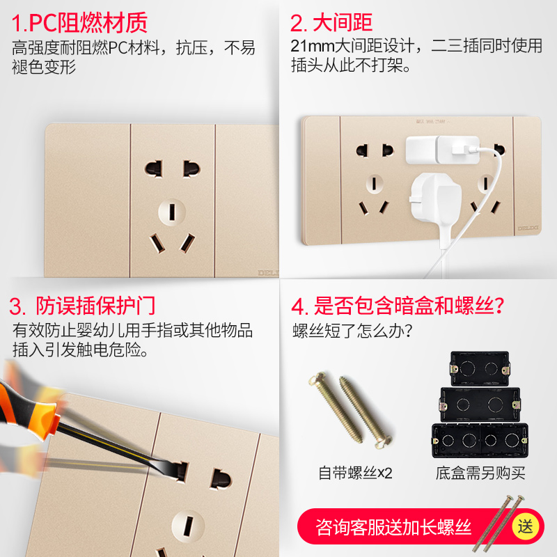 Delixi 118 switch socket Household wall 15 holes six nine holes twelve holes socket panel porous concealed